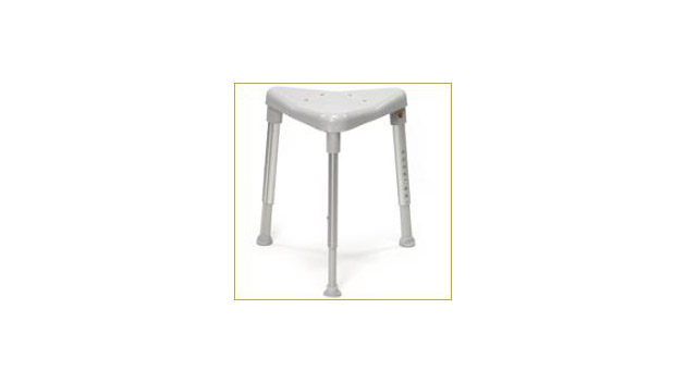 Tabouret à trois pattes, conçu pour s’installer dans le coin de la cabine de douche.